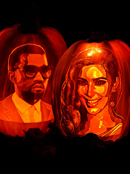 Maybe newlyweds Kim and Kanye will feature these pumpkin portraits – carved by the artist team at Rise of the Jack O'Lanterns, an annual Halloween festival that features over 5,000 designs – on their holiday cards this year.